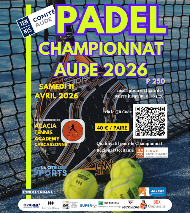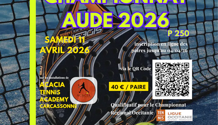 Tableau Final : samedi 11 avril 2026 à l'Acacia Tennis Academy - Cité des Sports, av Gal Sarrail, Carcassonne.