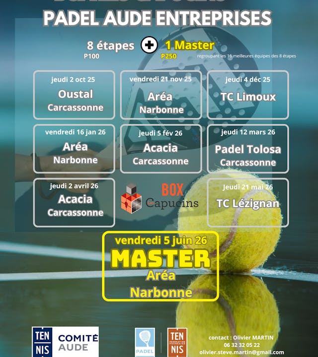 - 1 Master (05/06/26) à l'Aréa Padel Narbonne