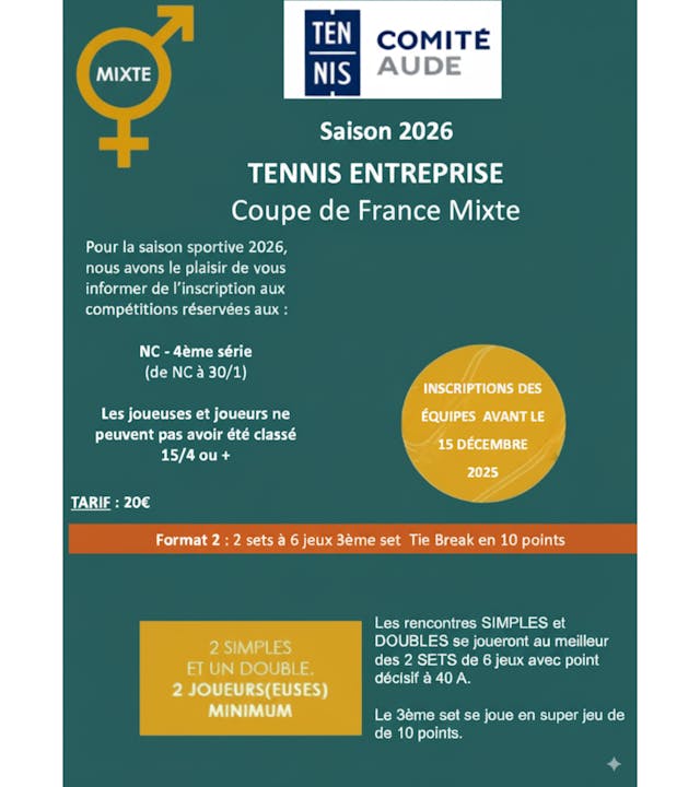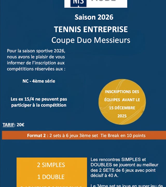 - Messieurs (qualificatif régional) : 4 simples 1 double